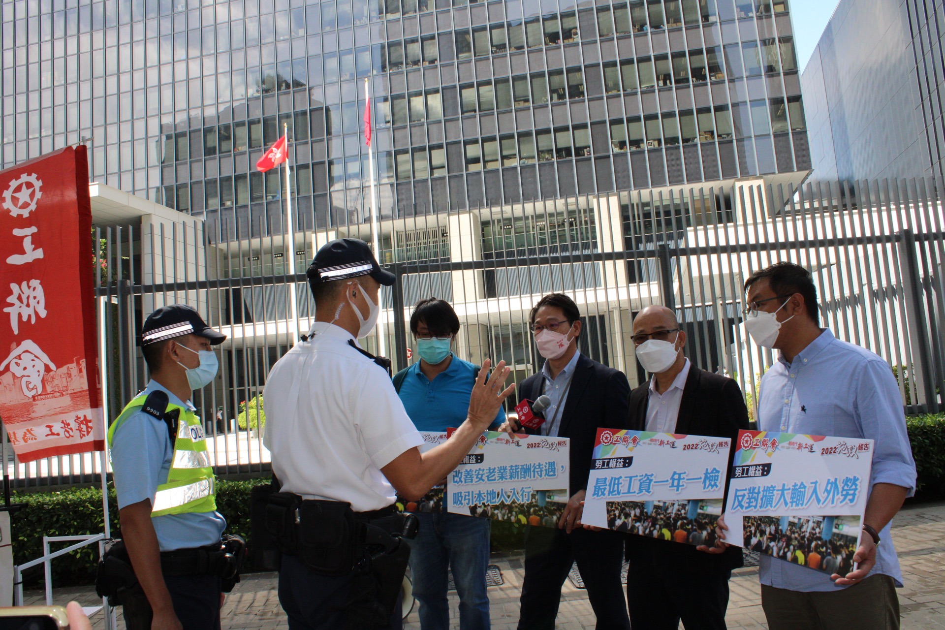 Police disturb a protest outside the Legislative Council in Central, Hong Kong ahead of the chief executive's first Policy Address in 2022.