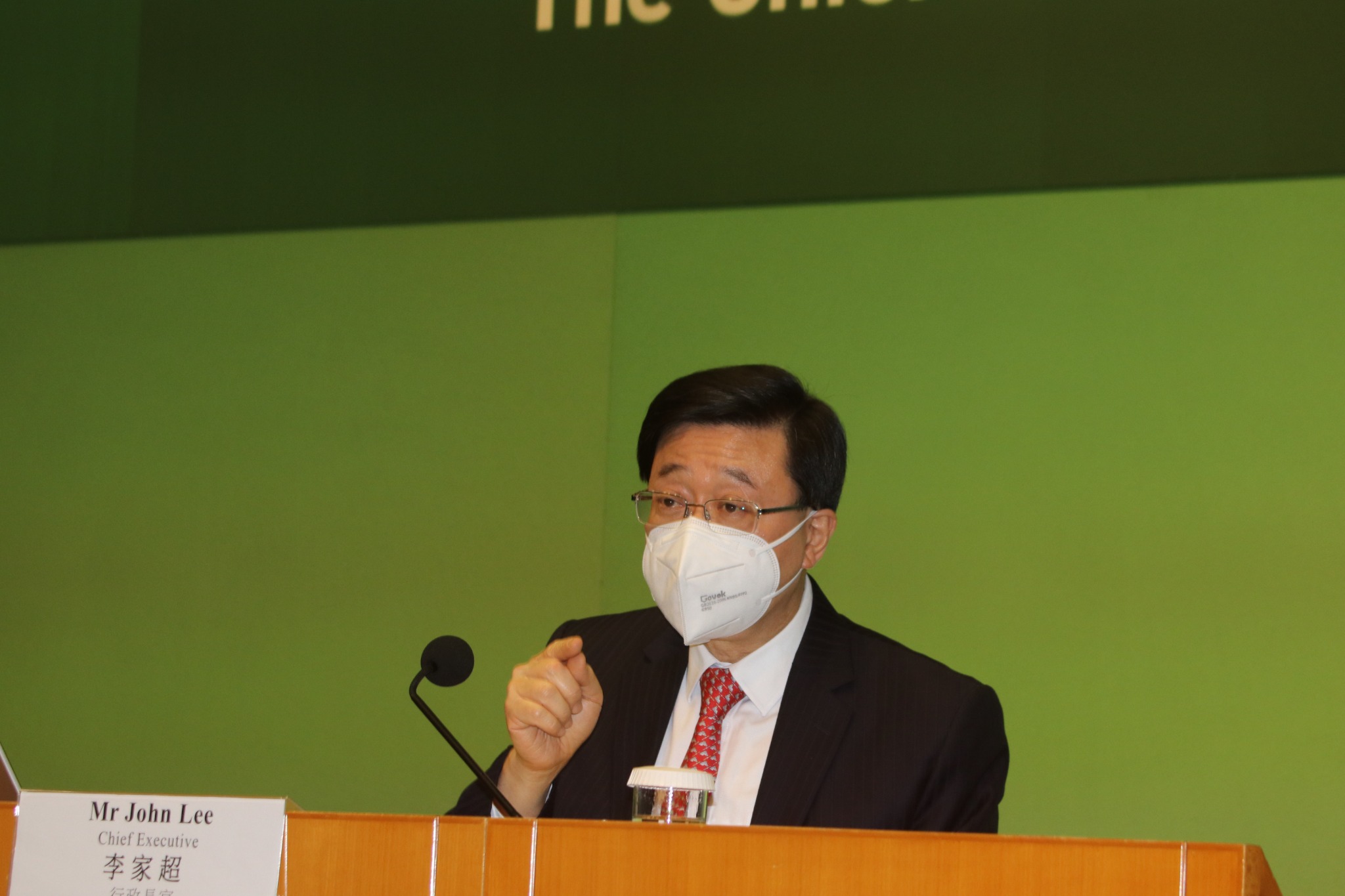 The Chief Executive of Hong Kong, John Lee Ka-Chiu delivers his press conference after his first Policy Address as the leader of Hong Kong in 2022.